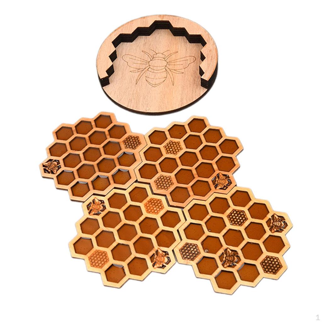 4x Bee Honeycomb Coasters Cup Pads Cold Drinks Beverage Mugs Drink Mats for
