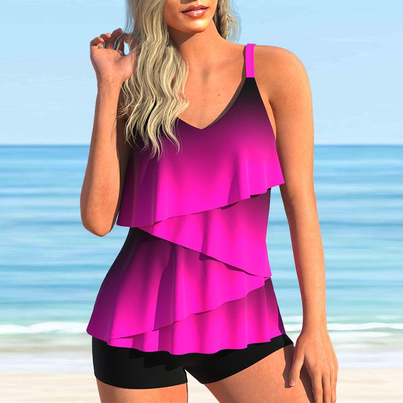 Women's Swimwear Tankini 2 Piece Swimsuit Blue Lotus Leaf Gradient Print Vacation Bathing Suits