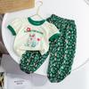 Girls Clothing Set Summer Korean Children Set Girls Stripe Knitted Short Sleeve+Red Wide Leg Pants 2 Sets