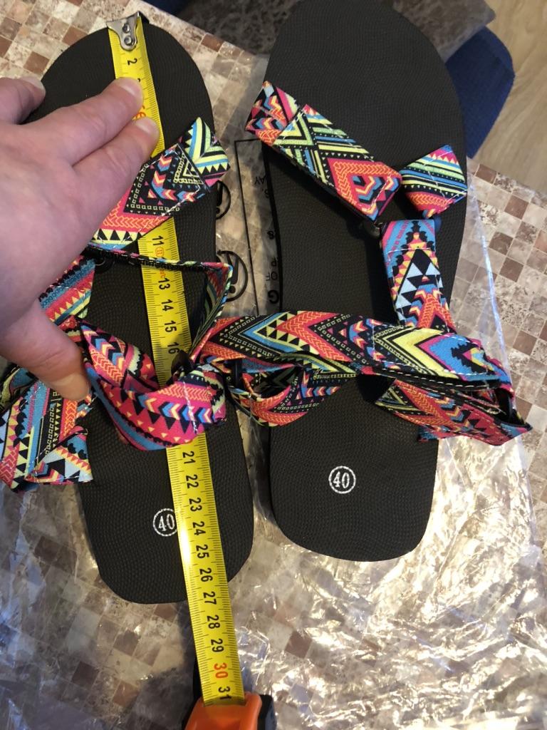 Sandals size 41 fit my 39, but they came defective - the strap on one is shorter than the strap on the other, so it's not enough to fasten the Velcro, and there are threads sticking out! Money wasted! I wrote to the support service, they compensated the cost, very prompt work, thank you Joom!