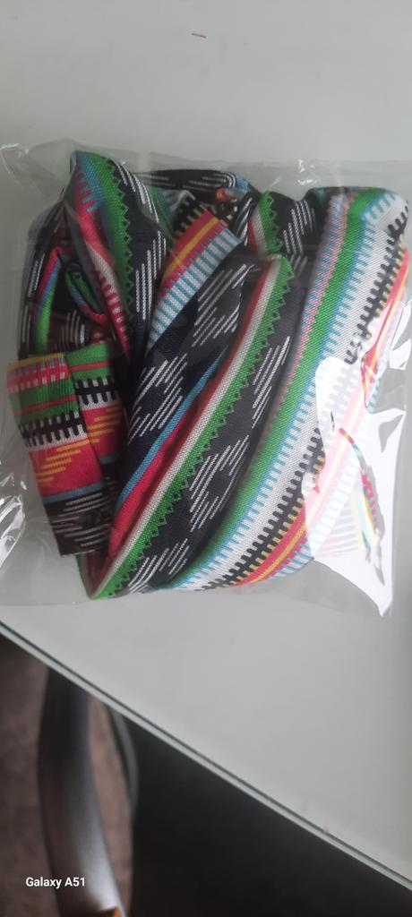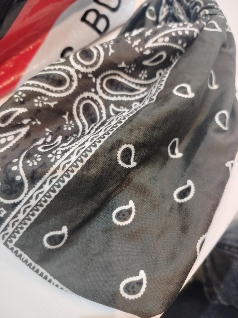 The material of the bandage is soft. The width allows you to cover your head from the sun without using a scarf. Thank you.