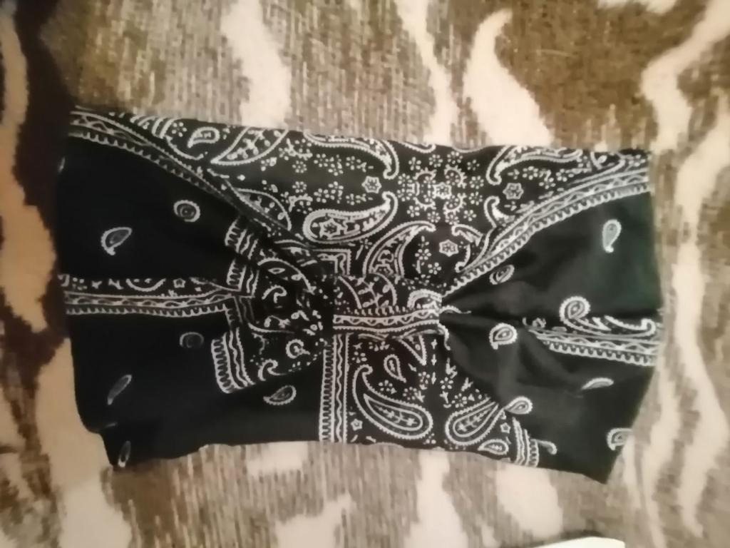 Soft, elastic. Thought it would be wider. Won't protect from the sun. Will hold hair in place during sports or while cleaning.