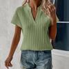 Women's Summer New Women's Tops Solid Color V-Neck Striped Short-Sleeved Casual T-Shirt Shirt
