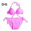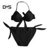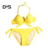 Embrace the lace-up trend with this sexy two-piece bikini set made of high-quality polyester material. The halterneck design features breast pads and steel supports for a flattering fit, while the briefs come with bow lace decorations for added charm.