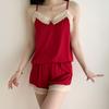 Small Fresh Summer Sexy Lace Lace V Suspenders Shorts Loose Casual Ice Satin Loungewear Set