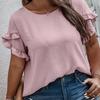 Plus Size European and American Cross Border Women's Solid Color Casual Round Neck Chiffon T-shirt