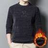 Winter Men's Crewneck Long Sleeve Sweater New Men's Chenille Plus Fleece Knit Sweater Men's Casual Men's Undercoat