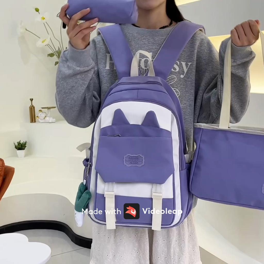 Three-piece Backpack Set Cat Ears Female Large Capacity School Bag Student Backpack