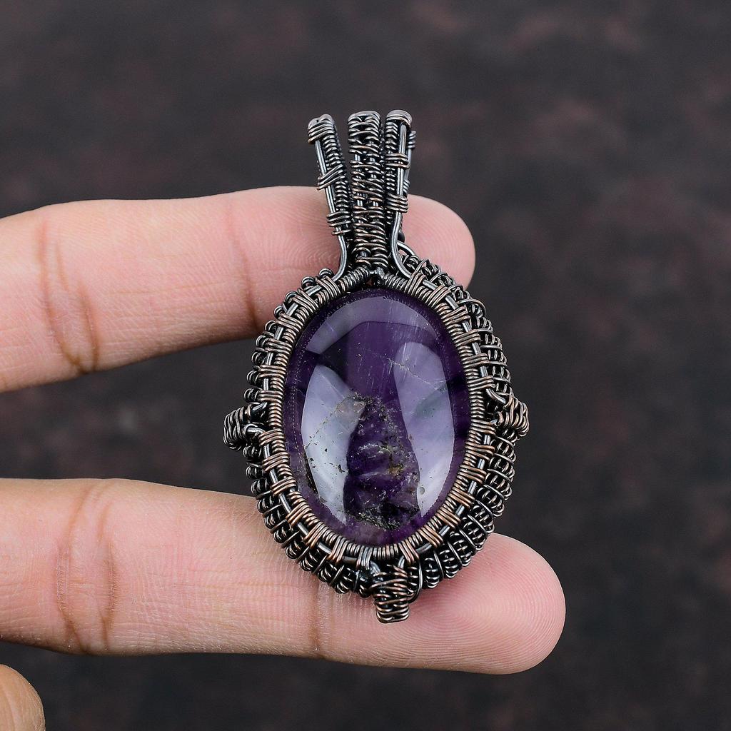 Star Amethyst Pendant Copper Wire Wrapped Gemstone Pendant Stylish Pendant Handmade Elegant Jewelry Gift For Mom Copper Wire Wrapped Jewelry