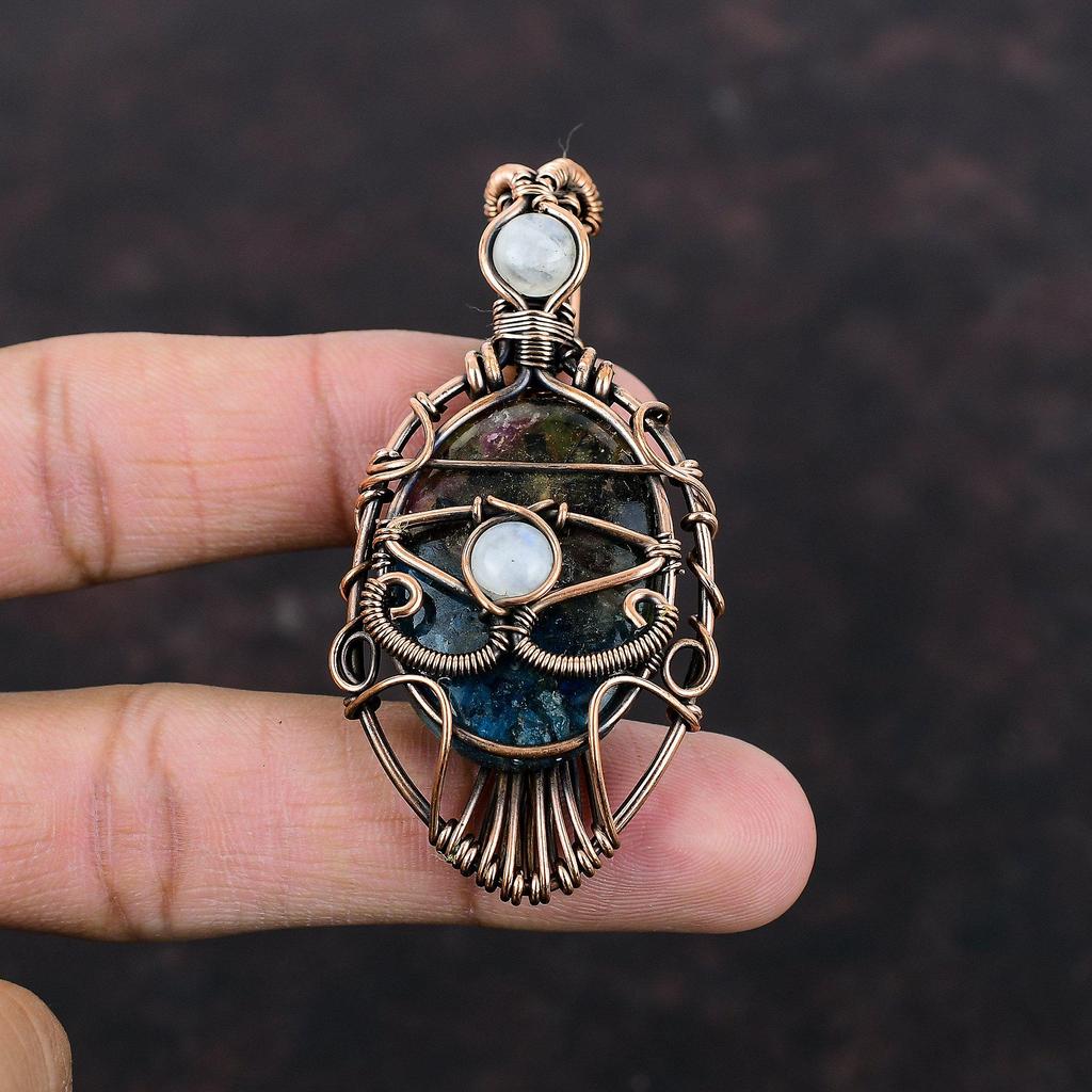Evil Eye Watermelon Tourmaline Pendant Copper Wire Wrapped Gemstone Pendant Rainbow Moonstone Pendant Handmade Designer Jewelry Gift For Him