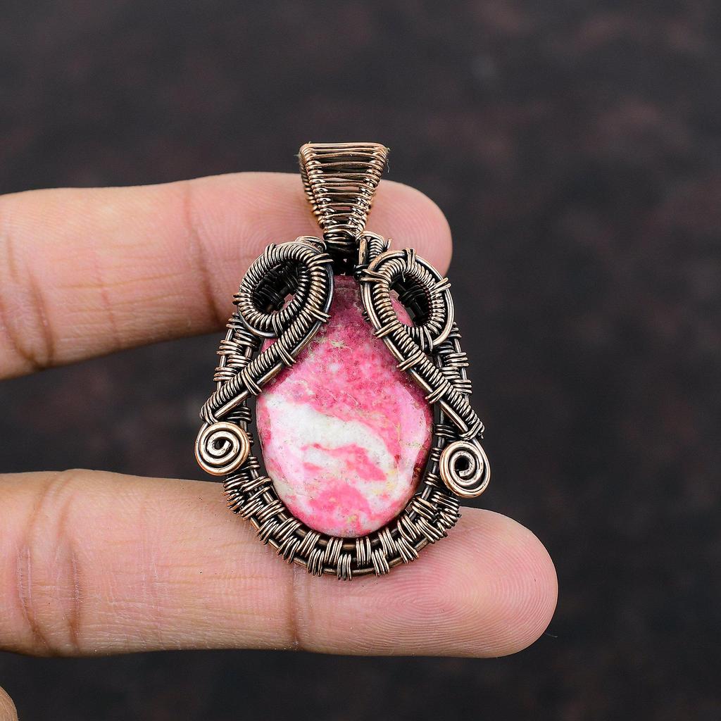 Thulite Pendant Copper Wire Wrapped Pendant Natural Gemstone Pendant Thulite Jewelry Handmade Pendant Dainty Copper Jewelry Anniversary Gift