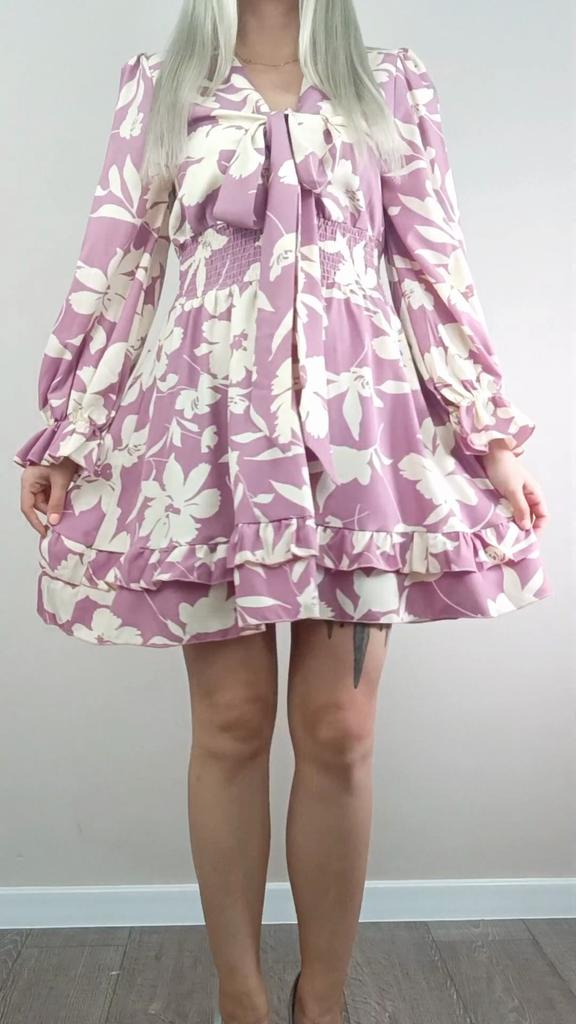 Beautiful dress with high waist, great floral print and bow on the neckline ❣️💋👗👍! Delivery time 🌞: 16 days to Germany. ♻️Scope of delivery: The delivery includes a beautiful dress 👗 in the appropriate color and size. The product is only available in 3 different colors. It is available in sizes from S to XL. I ordered the product in size S in light purple and the dress 👗 fits me perfectly and the color is exactly as shown. 🤗🤗🤗👍 I normally wear a size 36 (S). I weigh 55kg and am 167cm tall. My measurements are 90-65-90cm. Cup size 75B. The dress is ideal for me!!! 🌞Quality ♻️: The dress is light and swings beautifully. The dress is opaque, which I find very important. 👌Great floral print!👍👍👍👍 Material composition: 100% polyester. But the material is very comfortable on the skin. It feels like a cotton dress on the skin. I think the product 👗 is beautiful 🔝🔝🔝🔝🔝 The dress 👗 has a nice fit, which I really like. There is also a bow in the chest area, which you can use to tie a nice ribbon. I find it unusual and seductive. The elastic waistband accentuates the figure. Perfect for summer and vacation. 👌👌👌 ✳️Summary ✳️: A beautiful dress with a great floral print 👗 that you have to order in your normal size. It fits true to size. I am very happy to recommend the product.,5 stars. 🌟! Thank you Joom and the seller for this beauty🤗🤗🤗