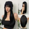 ALAN EATON Black Straight Synthetic Wig with Bangs Shoulder Length Black Wigs for Women Natural Looking Hair for Daily Party Use