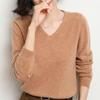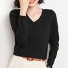 Women's Long Sleeved Knitted Sweater V Neck Loose Thin Top