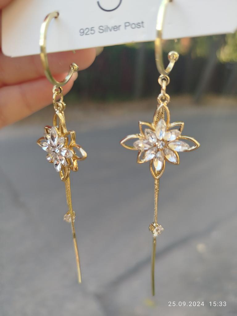 Luxury Crystal Flower Tassel Drop Earrings for Women Shiny Zircon Opal Long Dangle Earrings Girls Party Wedding Jewelry Gift