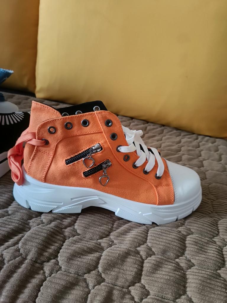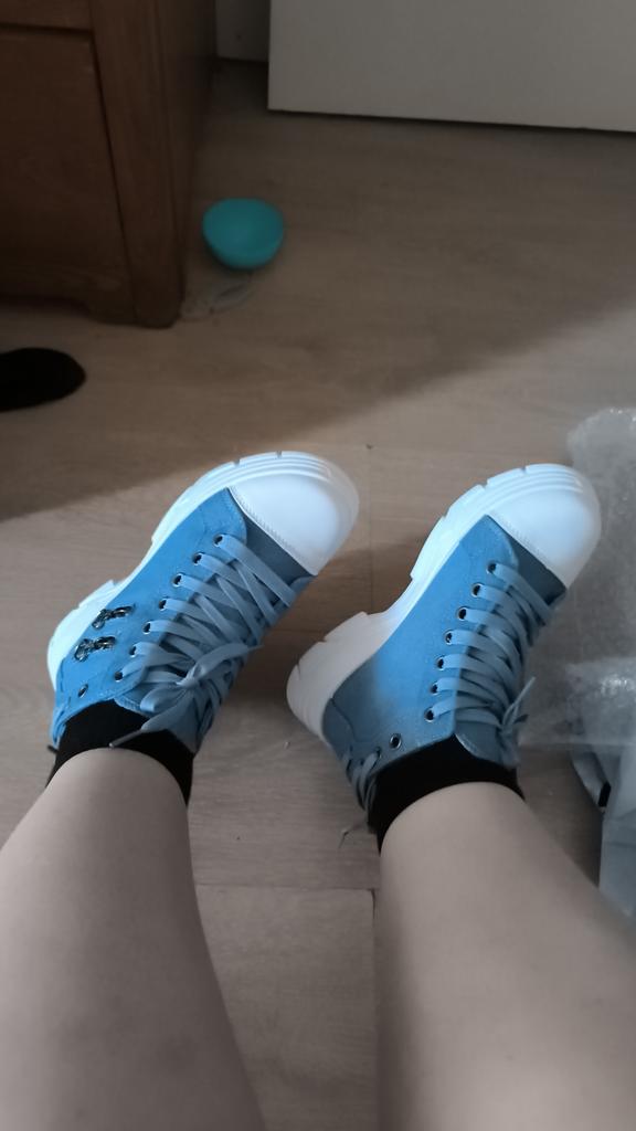 The sneakers are great! Just like in the picture, the product fully corresponds to the photo. For my size 36 foot, I ordered 38, and they fit perfectly.