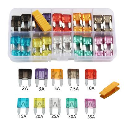 120Pcs Small Profiles Size Blade Car Fuse Assortment Set for Auto Car Truck 2/3/5/7.5/10/15/20/25/30/35A Fuse with Plastic Box
