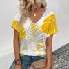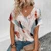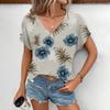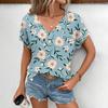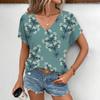 Women's V-neck T-shirt Fashion Fragmented Flowers Pattern T-shirt Comfortable Leisure Elegant Short Sleeved Women's T-shirt