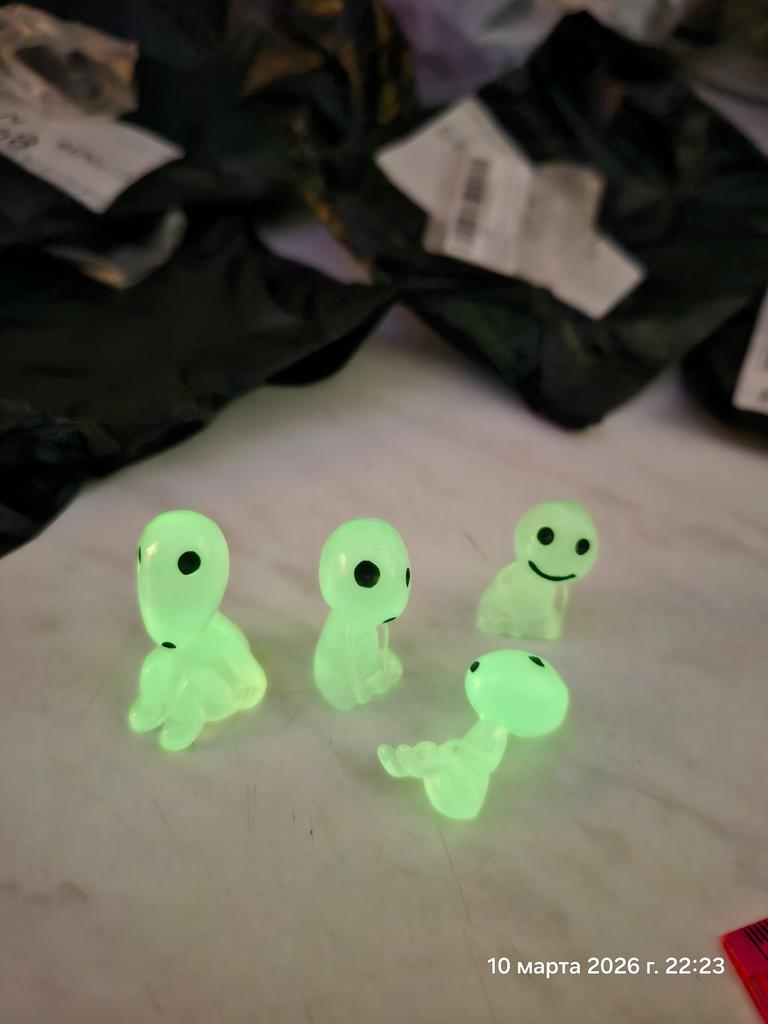 A cute figurine that glows in the dark after being exposed to light during the day. Now it has joined its company