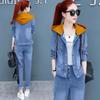 Fashion Hooded Denim 2 Piece Sets Women Outfit Spring Autumn Casual Long Sleeve Jean Jacket + Elastic Waist Jeans Fashion Suit