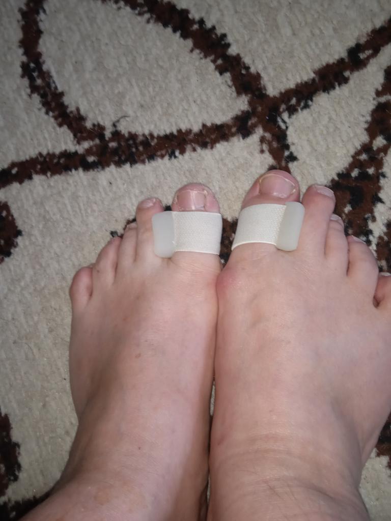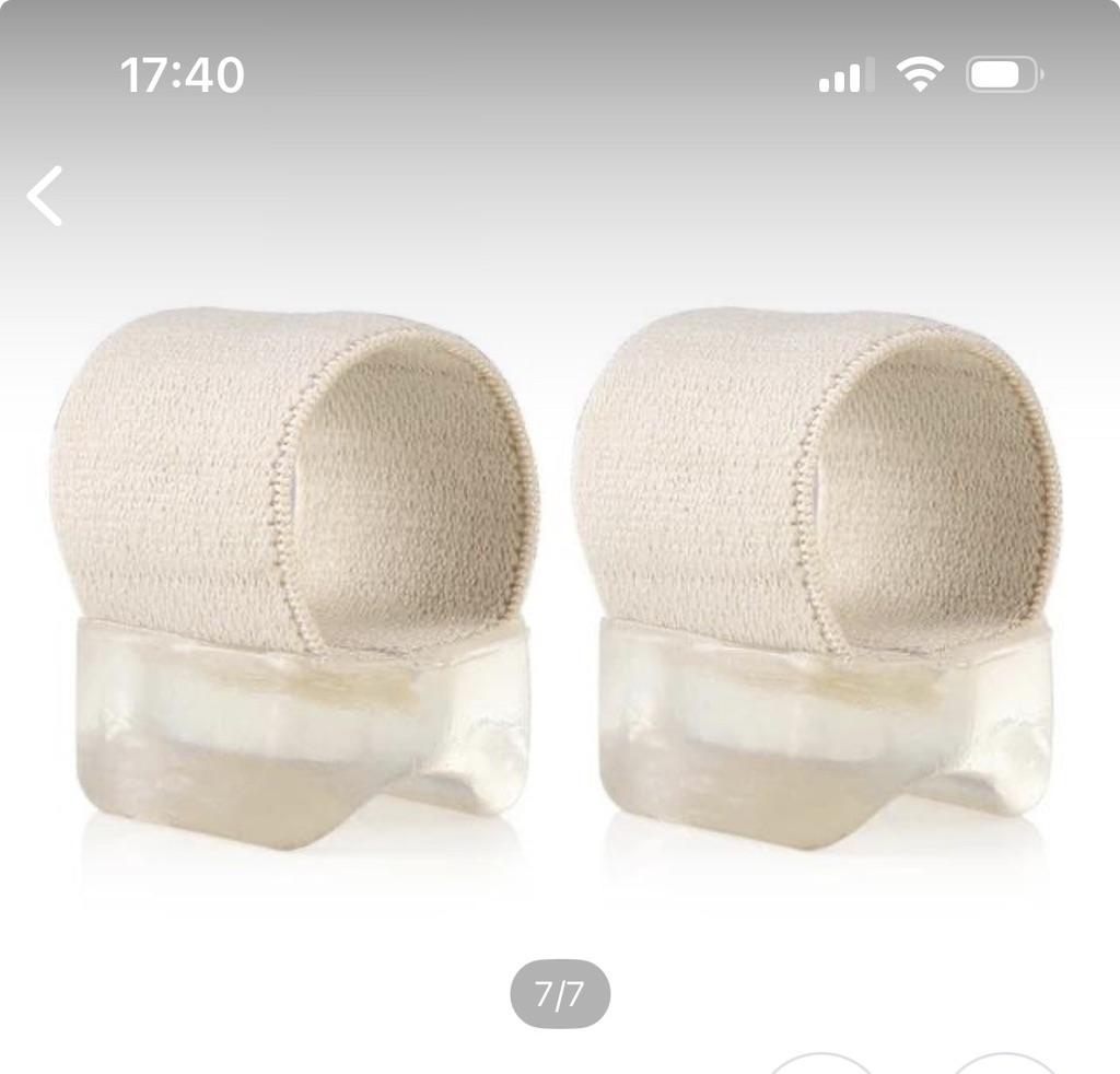 Toe Separators For the prevention and treatment of toe deformities. It consists of a gel pad and a wide elastic band that is put on the finger.. It's comfortable to wear and I think it does its job.