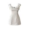 Elegant Woman Dress Sweet Lace Patchwork Polka Dot Satin Sleeveless Ruffles Square Collar Fashion Mini Dresses Party Sexy Ladies