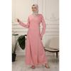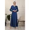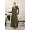 Black Double Breasted Neck Piping Flexible Interlock Fabric Prayer Dress