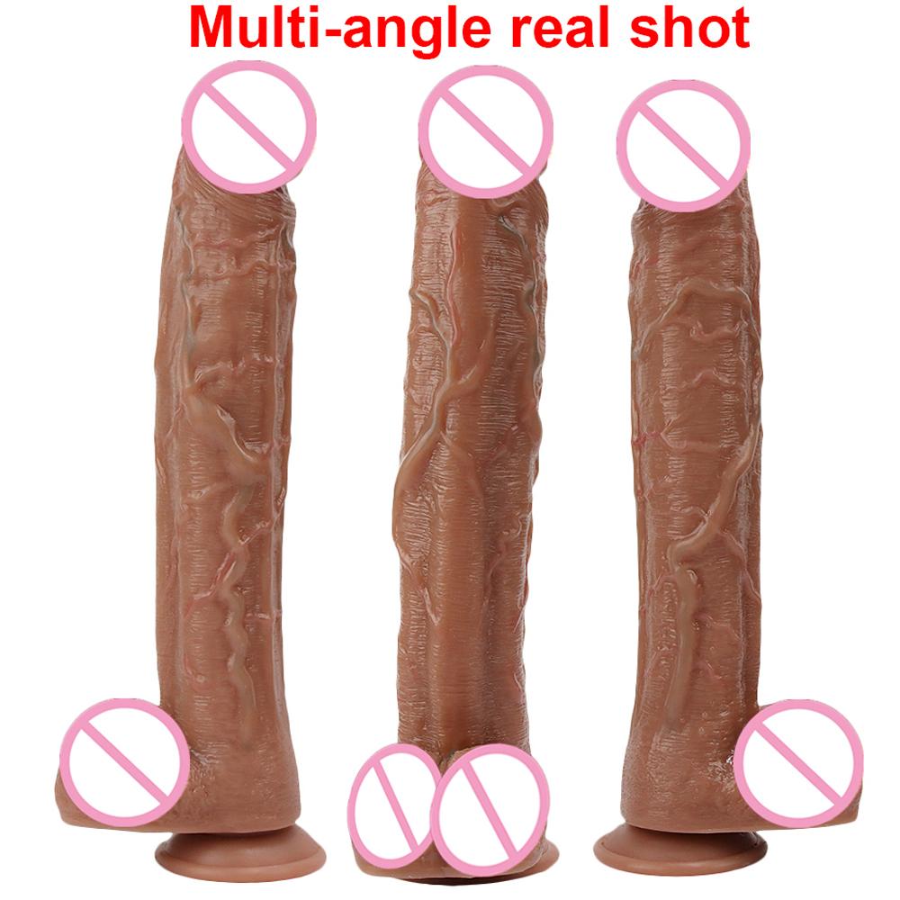 35CM Realistic Silicone Dildo Black Large Penis Sex Toy For Men Women With Thick Glans Real Dong Powerful Suction Cup Stiff CockPerfect size