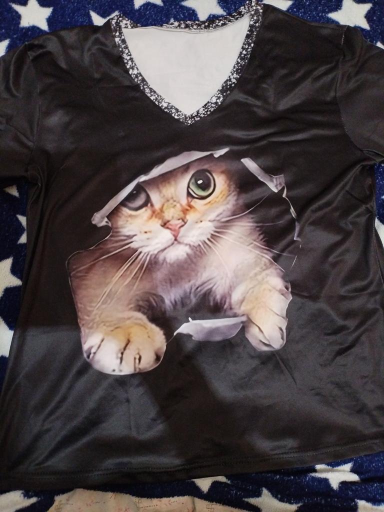 2024 Women T Shirt 3D Cat Printed Tops Women's Oversized Clothes Tees Summer V-Neck Tops Shirt Original Design T-Shirts