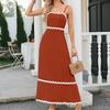 VEZFAA Women's Fashion Summer Spring Solid Color Print Sleeveless High Waist Casual Dresses
