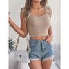 VEZFAA Women's Fashion Casual Summer Spring Solid Color Print Sleeveless Square Collar Blouses & Shirts