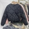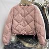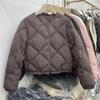 Women's Winter Autumn O-Neck White Duck Down Jacket Coat Loose Short Solid Color Diamond Grid Down Coat