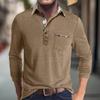 Men's Spring And Autumn Solid Color T-shirt Lapel 3 Button Open Placket Button Long Sleeved Top