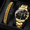 2PCS Fashion Mens Calendar Watches Luxury Male Stainless Steel Quartz Wristwatch Luminous Clock Men Bracelet Wrist Watch