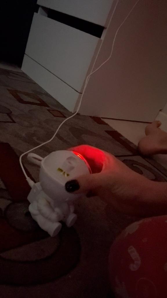 satisfied, works from power supply. You need to buy batteries for the remote control yourself, they are not included. A cool thing for a gift