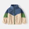 White Stand Collar Autumn Winter Fashion Warm Kids Coat Soft Loose Polyester Material Boys' Color Block Fleece Jacket