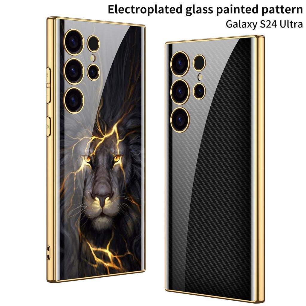 For Samsung Galaxy S24 S23 Ultra Plus Case Luxury Electroplated Painted Pattern Glossy Glass Shockproof Hard Cover Accessories