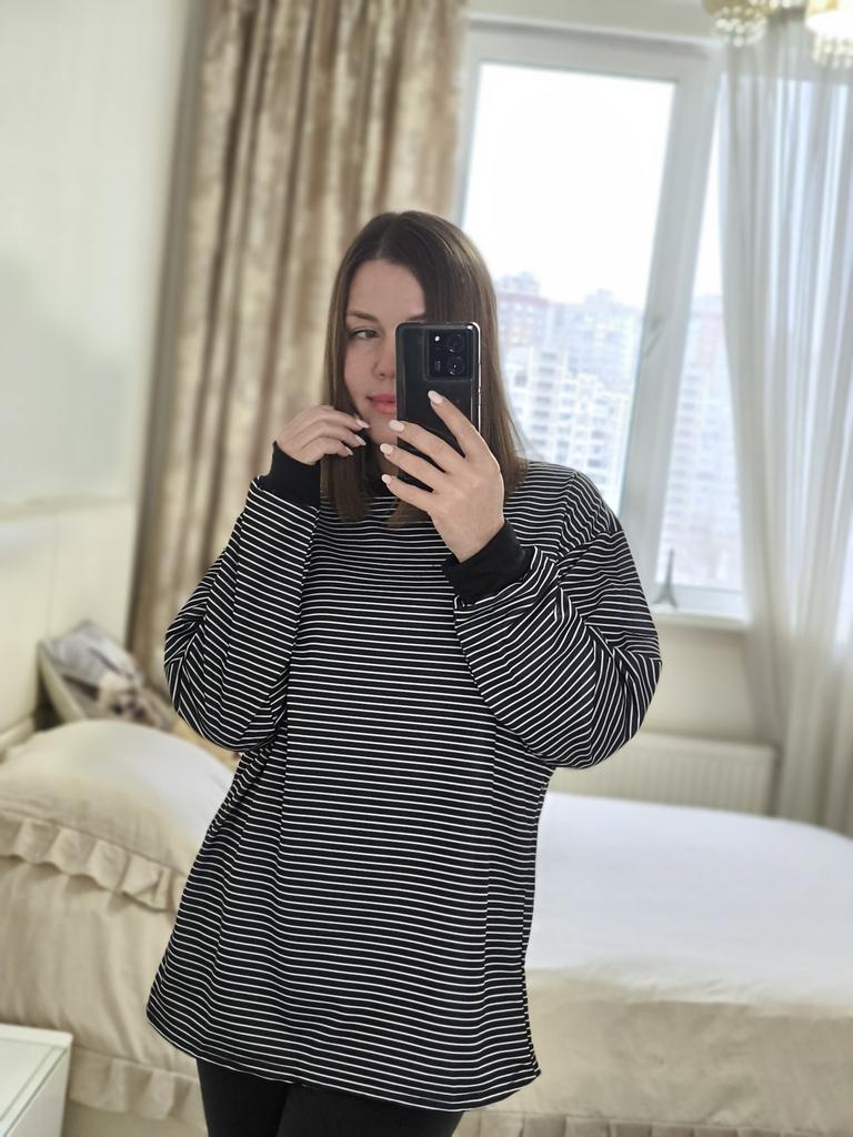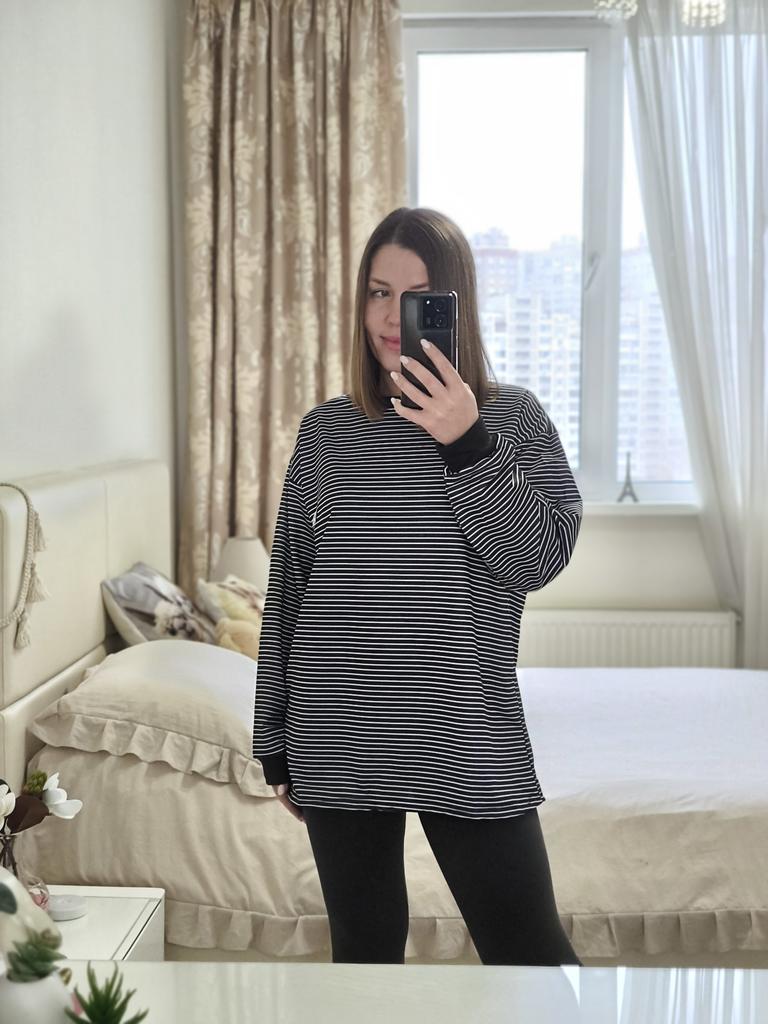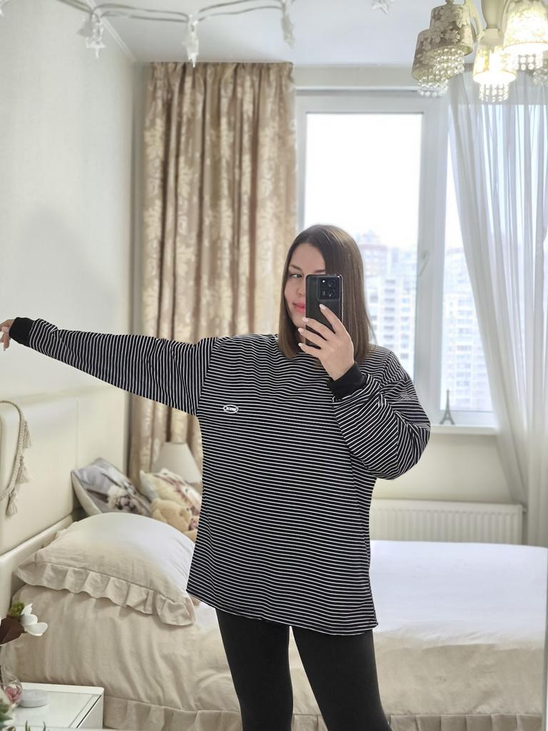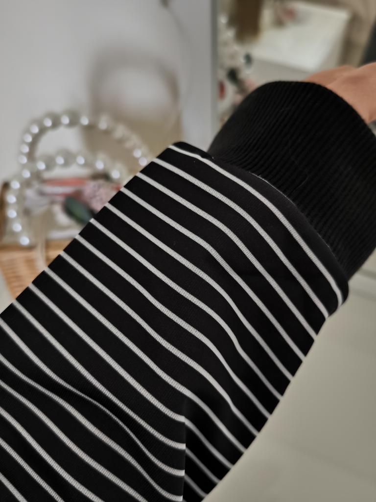 Striped Bottom Shirt Women's Plus Size Autumn Round Neck Long Sleeve Sweatshirt Top