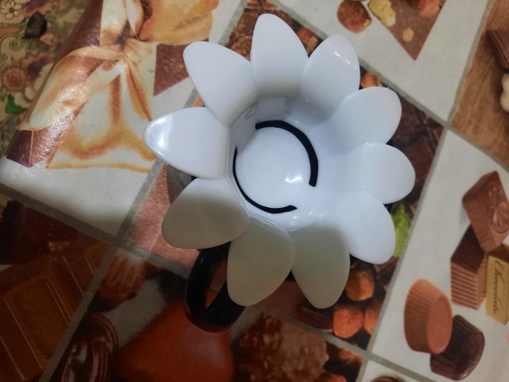 A very convenient gadget, because it can be installed on a glass or mug and you don't have to hold it in your hands. The protein flows freely into the dish