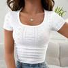 IHUASU Women's Summer Low O-Neck Eyelet Short Slim T-shirt