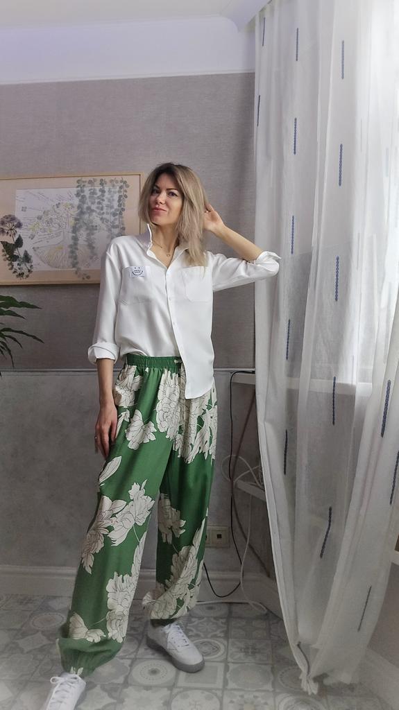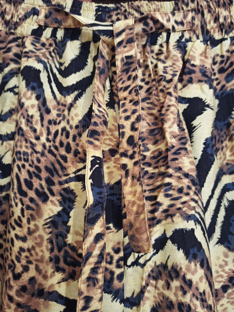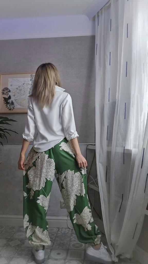 I ordered these animal print pants for summer, and I must say – I was pleasantly surprised! The fabric is very pleasant, feels light and airy, perfect for hot days. Although there is no stretch, the elastic waistband is really comfortable and fits the body well, even after a few washes.. The loose fit sits just right – not clinging to the body, but also not looking like I took a few sizes up. The style is a bit hipster, different from my usual pants, and that's part of what made me love them more. Also, the animal print adds a cool and light touch to an everyday look.. I also liked that they have delicate lace at the bottom – adds interest without looking excessive. Overall – if you're looking for pants that are beautiful, comfortable, and with a slightly different style – this is a really successful choice. I recommend taking according to the table, because the sizes are quite accurate..