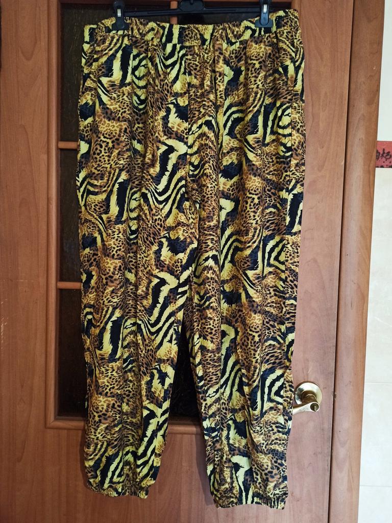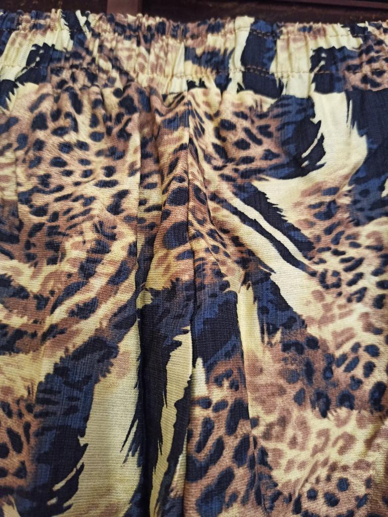 I bought these leopard print pants for summer and I'm really happy! Their loose fit is super comfortable, perfect for hot days when you don't want to feel confined in fabric. Although there's no stretch, the elastic waistband really does the job and fits the body well.. The fabric is pleasant on the skin, feels high-quality – a blend of cotton and polyester, not too thin and not thick. The animal print style together with the hipster-street vibe gives a special touch and attracts attention in a good way.. If you're looking for a light, stylish, and truly comfortable casual look – it's totally worth it. Just keep in mind that it's not a stretchy fabric, so measure according to the size chart. I recommend it!