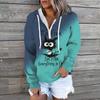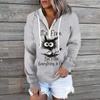 Women Plus Size Pullover Hoodie Long Sleeve Round Neck Cute Cat Cartoon Printed Sweatshirt
