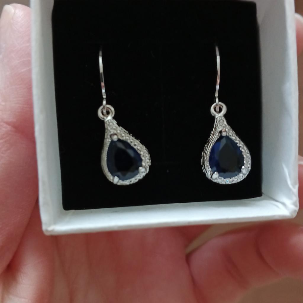 Water Drop Zircon Earrings For Women 925 Sterling Silver Vintage Blue Gems Drop Earrings Anniversary Wedding Jewelry