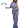 Stand out in the crowd with this fashionable hot girl style set featuring long sleeves, cropped top, and straight leg pants with sequined tassels.