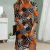 Women Casual Dress Autumn Pumpkin Party Print Dresses For Women O-neck Short Sleeve Dress Plus Size