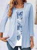 Spring Autumn Women's Solid Color T-Shirt U-Shaped Collar Chest Print Long Sleeved Pullover Ladies Casual T-Shirt Fashion Top