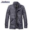 JOOBOX Men's Men's Leather Jacket Slim Stand Collar Mid-Length Washed Motorcycle Leather and Velvet Windbreaker