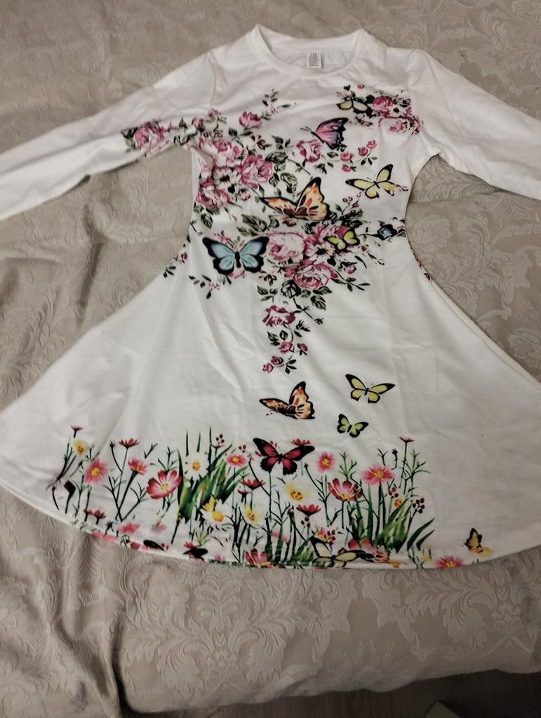Girl Casual Butterfly Flower Fish Scales Print Round Neck Long Sleeve Dress Kid Princess Dress