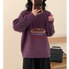 Cute Embroidery Pullover Sweater Women's Autumn and Winter Candy Color Round Neck Loose Knit Sweater Top College Style